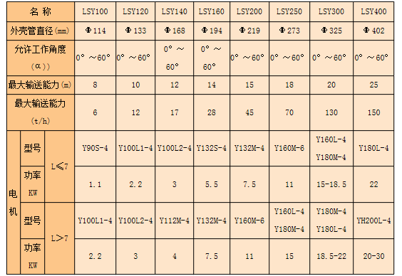 LSY螺旋輸送機(jī)與其他輸送設(shè)備相比較,具有結(jié)構(gòu)簡(jiǎn)單、橫截面尺寸小、密封性能好等特點(diǎn),可以中間多點(diǎn)裝料和卸料,操作安全方便以及制造成本低。設(shè)備缺點(diǎn)是機(jī)件磨損較為嚴(yán)重,輸送量較皮帶機(jī)低,消耗功率大以及物料在運(yùn)輸過程易被破碎。